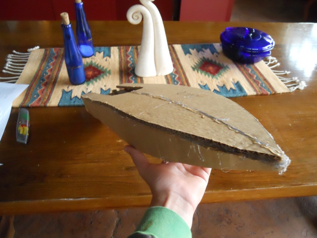 I finished the cardboard mockup. It looks pretty good for cardboard. I made it wil hot glue. It looks very sleek and fast. All of the parts still fit well after being scaled down. Here are the pics of the cardboard version. It is made in the same scale that the wooden version will be made in.